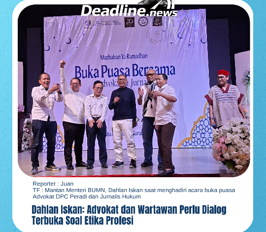 Surabaya, Deadline,News – Mantan Menteri BUMN, Dahlan Iskan, mendorong adanya dialog terbuka antara kalangan advokat dan wartawan untuk membahas persoalan etika profesi yang kerap menjadi sorotan publik.