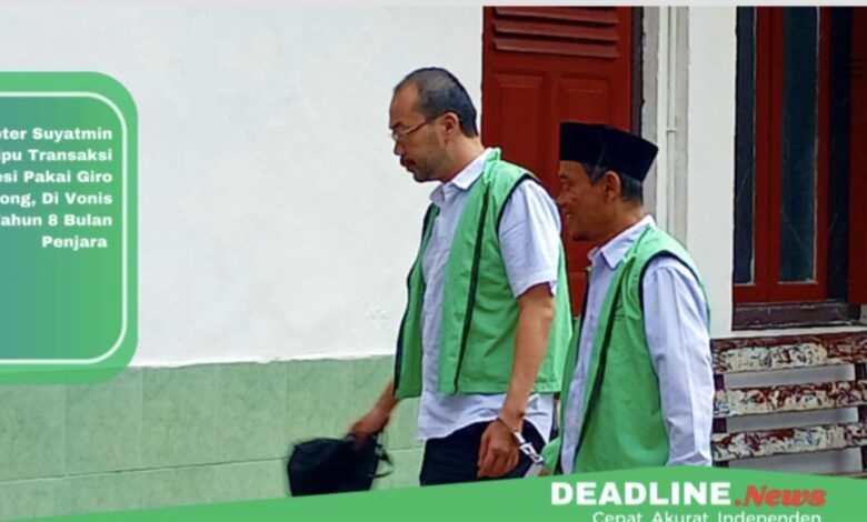 Surabaya, Deadline.News – Terdakwa Peter Suyatmin divonis 1 tahun 8 bulan penjara oleh majelis hakim Pengadilan Negeri Surabaya dalam perkara penipuan transaksi pembelian material besi bernilai ratusan juta rupiah.